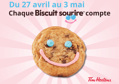 Acheter 36 biscuits ou plus FAIRE LA DIFFÉRENCE… UN BISCUIT À LA FOIS Du 27 avril au 3 mai, retrouvez les irrésistibles biscuits Sourire dans les quatre restaurants Tim Hortons de Rimouski. 100 % des ventes de biscuits seront divisées à parts égales entre la Fondation jeunesse du Bas-Saint-Laurent, la Fondation Maison Marie-Élisabeth et la Fondation Santé Rimouski. Chaque biscuit vendu au coût de 2 $ = […]